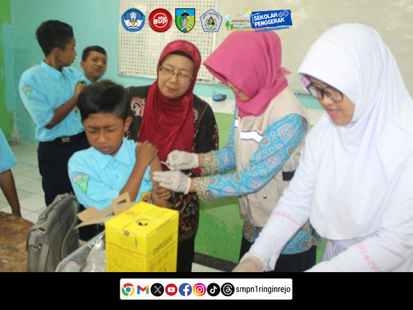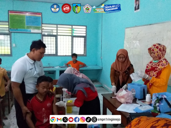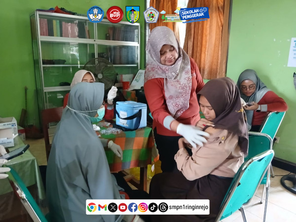 Imunisasi adalah cara efektif untuk melindungi tubuh dari serangan penyakit berbahaya. Ini dilakukan dengan memberikan vaksin kepada seseorang, yang akan memicu produksi antibodi untuk melawan penyakit tertentu. Dengan adanya program imunisasi, siswa SMP Negeri 1 Ringinrejo dapat terbebas dari berbagai penyakit yang dapat mengganggu kesehatan dan perkembangan mereka.
