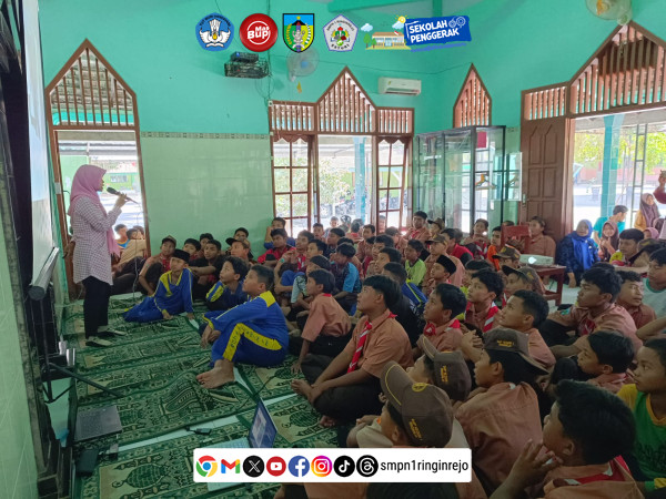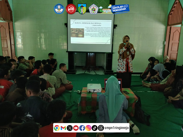 jumat 18 Oktober 2024 Siswa-siswi SMPN 1 Ringinrejo mengikuti sosialisasi pencegahan HIV/AIDS yang selenggarkan oleh puskesmas yang bertempat di mushola SMPN 1 Ringinrejo.