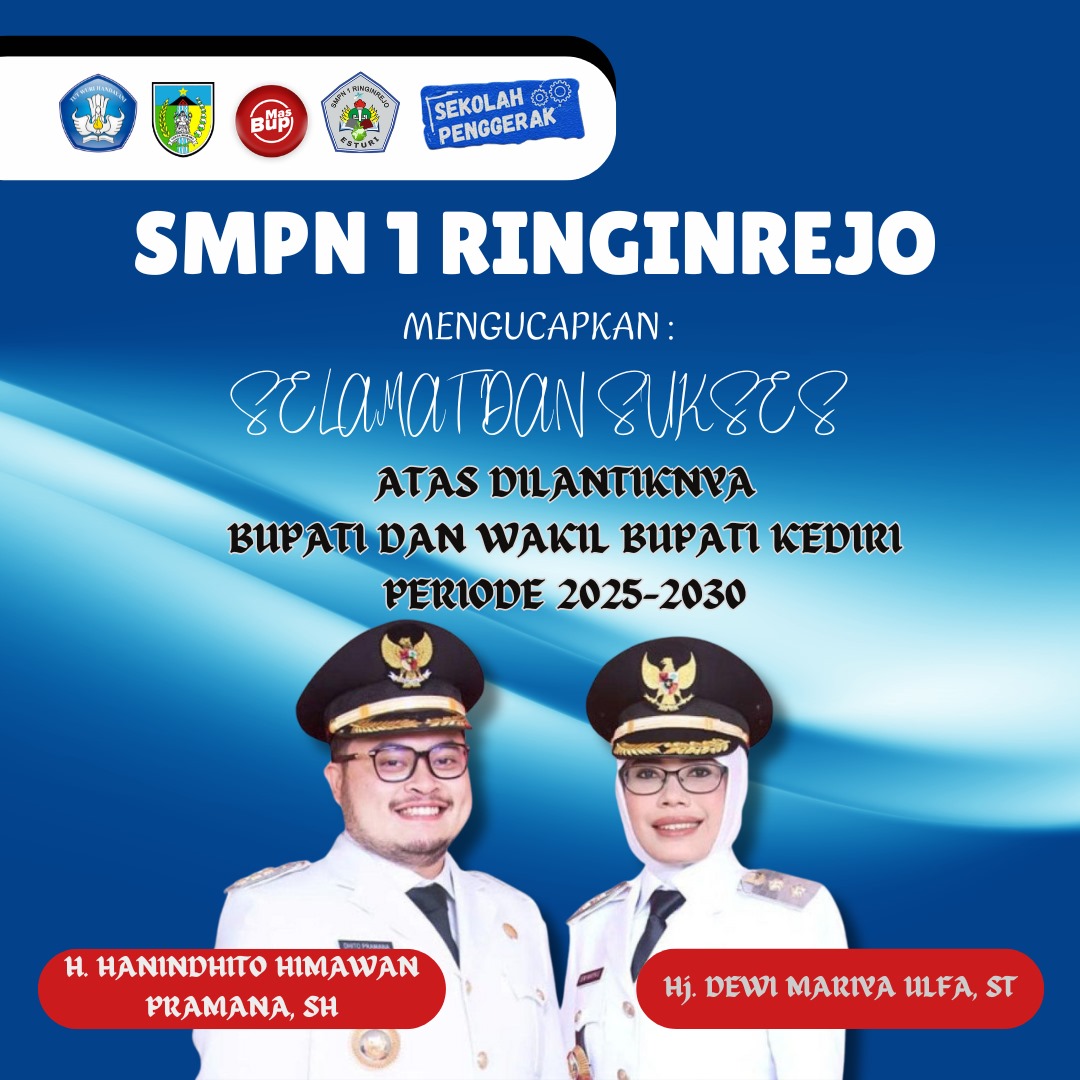SMPN 1 Ringinrejo mengucapkan Selamat & Sukses atas Pelantikan Bupati dan Wakil Bupati Kediri Periode 2025-2030 ✨