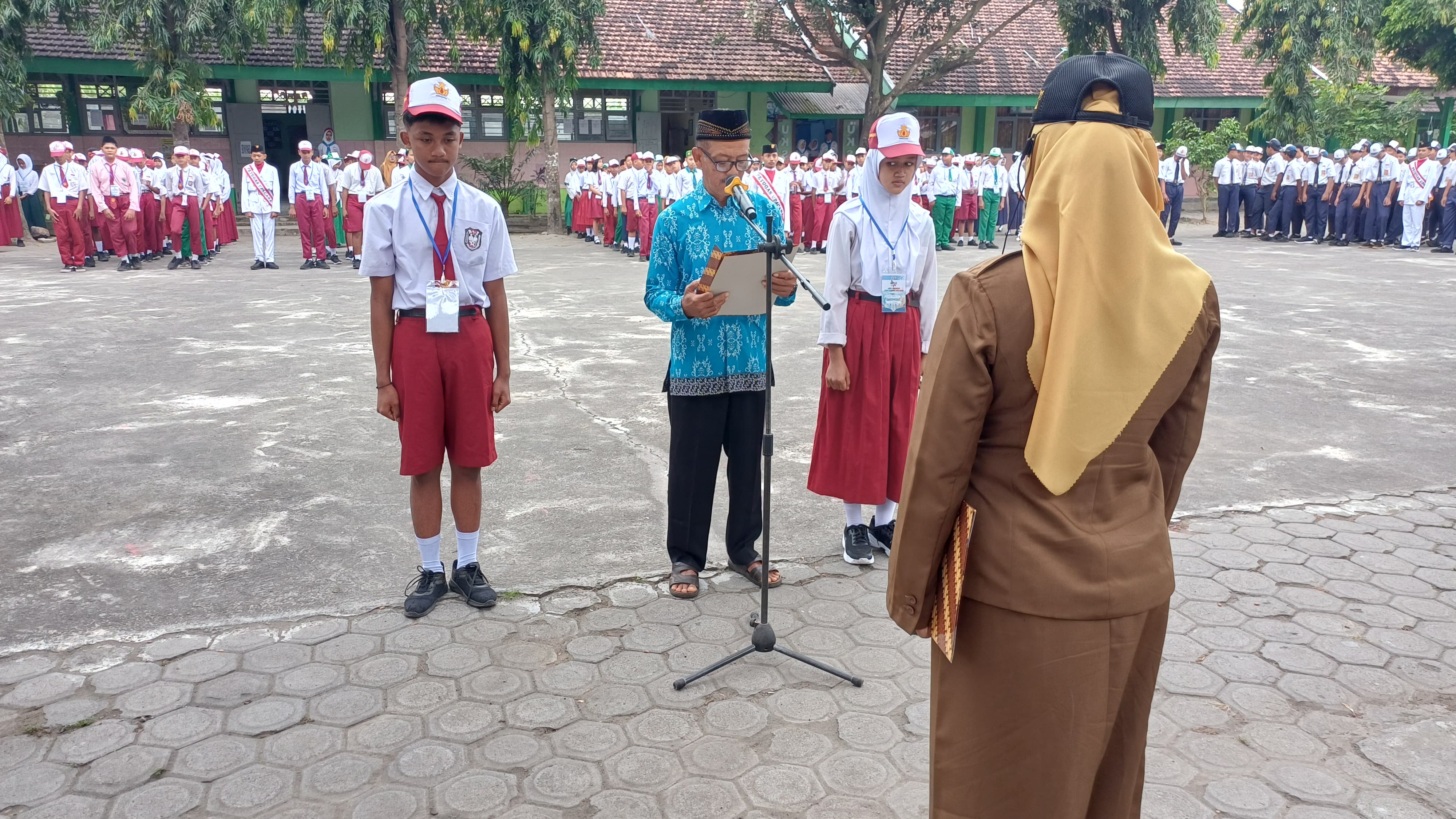 Kegiatan MPLS diawali dengan upacara pembukaan yang dipimpin oleh Kepala SMPN 1 Ringinrejo, Ibu Ririn Kasiani, S.Pd. Dalam sambutannya, beliau menekankan pentingnya membangun semangat belajar dan karakter disiplin sejak hari pertama masuk sekolah.